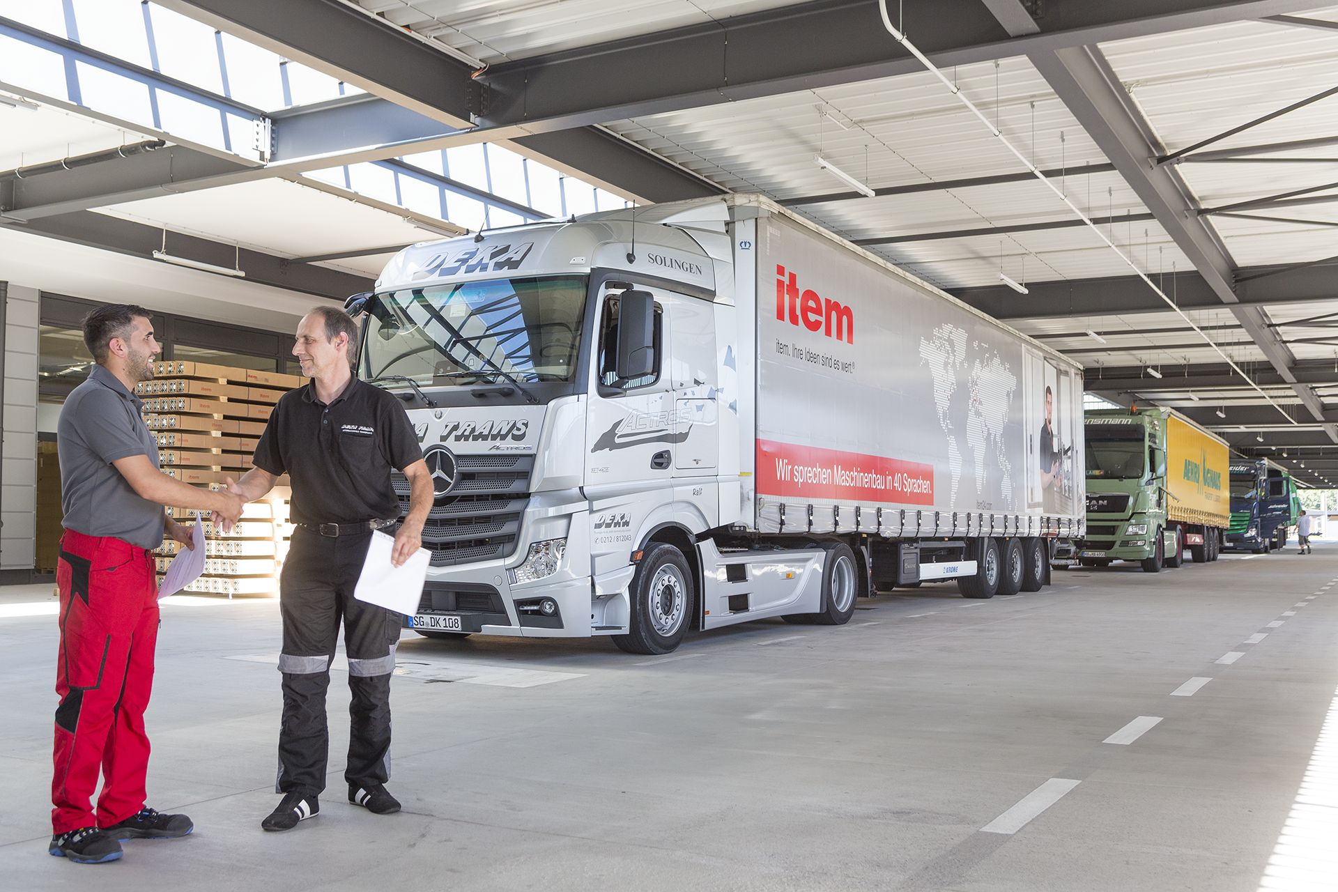 Bildunterschrift 1: item hält auch in Krisenzeiten sein Lieferversprechen: Deutschlandweit werden Lagerware und zugeschnittene Komponenten innerhalb von 48 Stunden, Bausätze und fertige Komplettlösungen innerhalb von 14 Tagen geliefert.